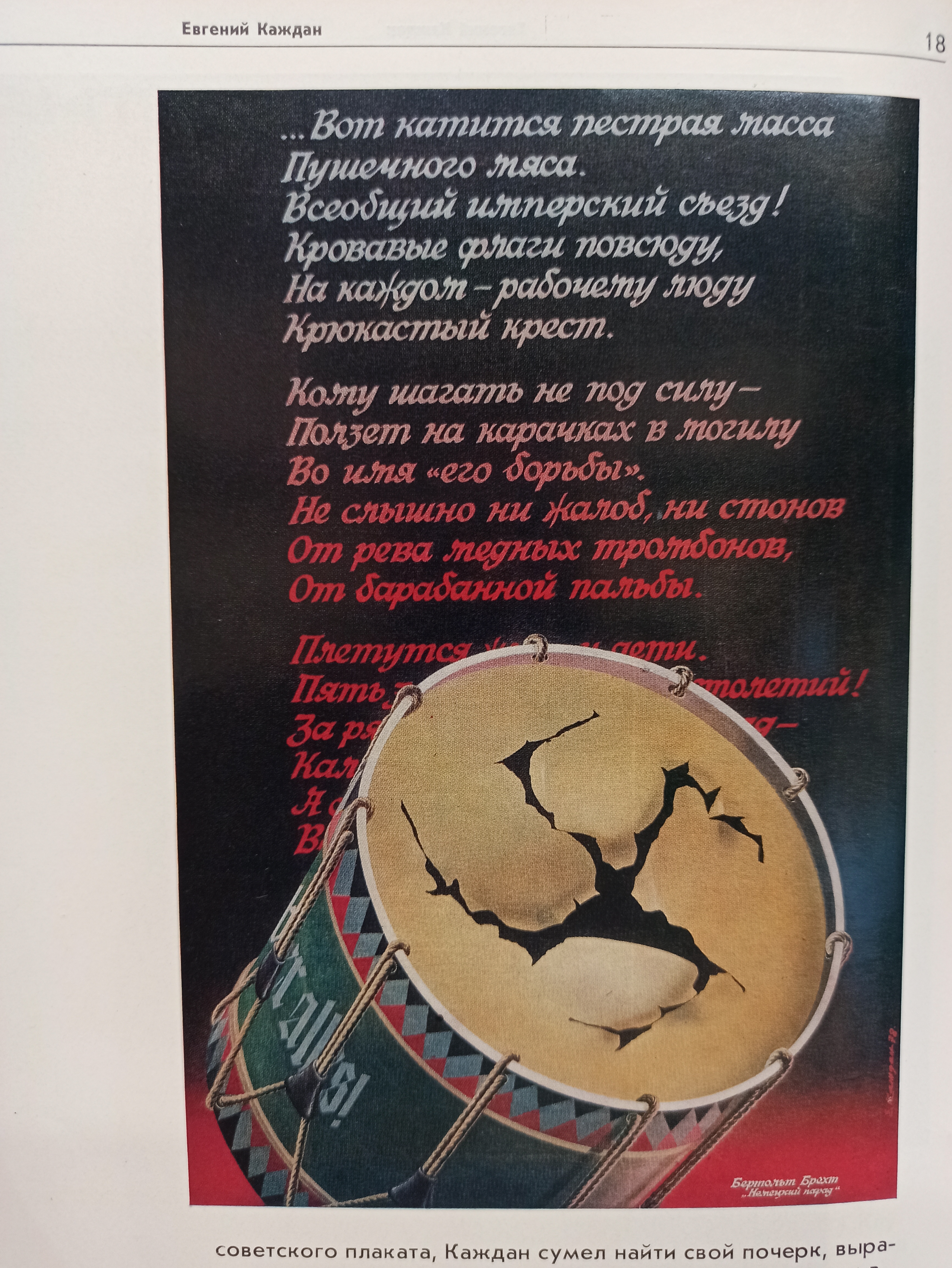 Но я бы сказал, что плакаты Каждана имеют не только антивоенные параллели с сегодняшним днем, которые не удовлетворят ни антикоммунистов, ни государственников-почвенников, ведь и сам Евгений Абрамович не знал и не искал пост-советское / пост-колониальное «между». Свой метод в плакате он называл «разоблачение», и там явно не было идеологических полутонов.