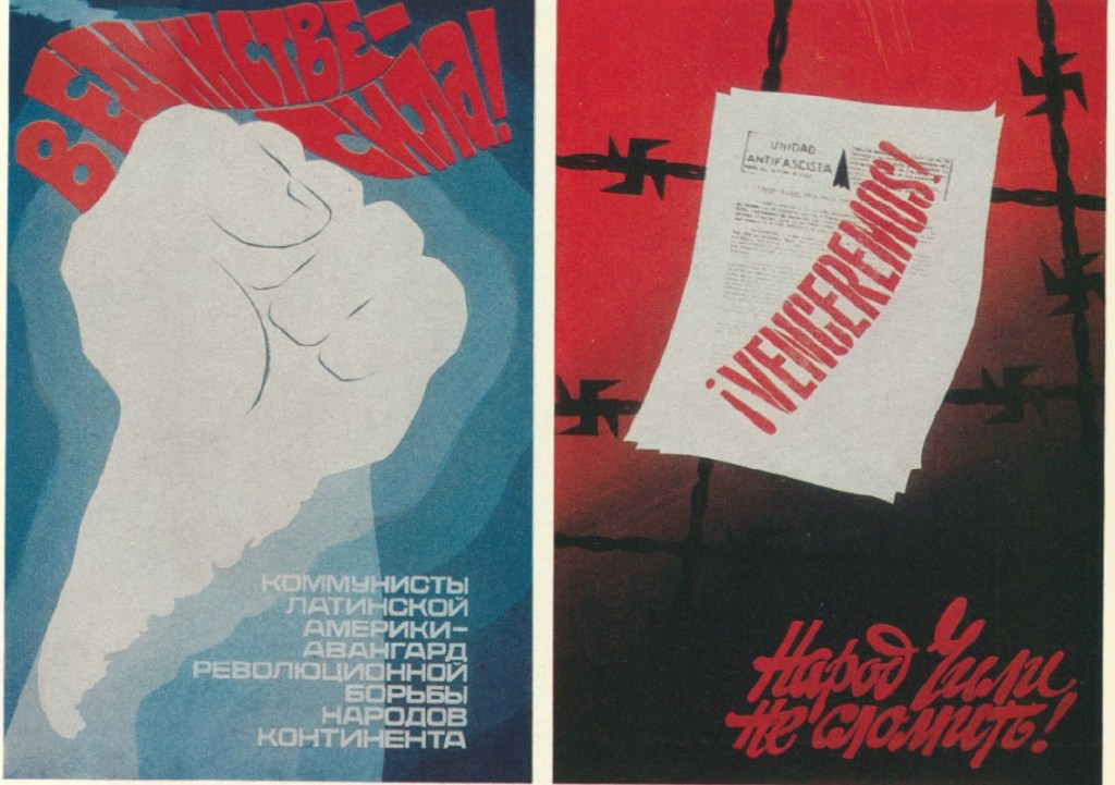 Плакаты Евгения Каждана — это отголоски давно минувших лет, то, что будоражило мировую общественность в 60-х и 70-х из перспективы коммунистической солидарности: репрессии Пиночета в Чили, Апартеид в ЮАР, движение за гражданские права чернокожих в США и многие другие кампании, за исключением диссидентского движения в Восточной Европе, которое было абсолютным табу в бывшем Союзе.