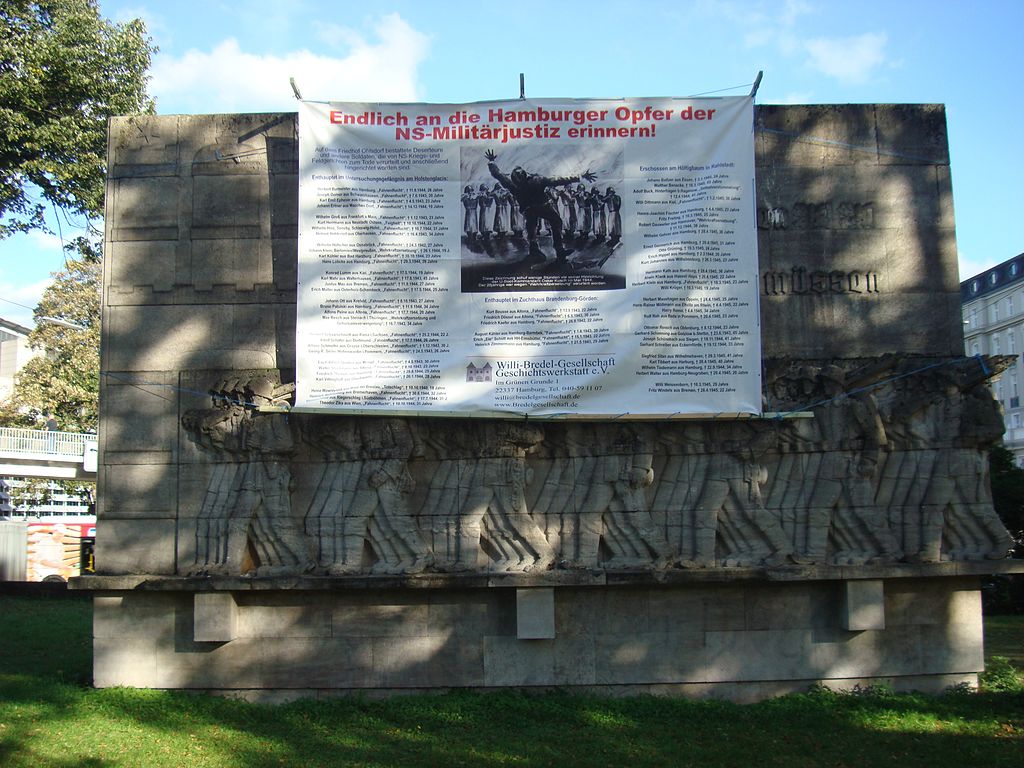 Памятник дезертирам и другим жертвам военной юстиции в Гамбурге на Даммтор / Штефанплатц появился не так давно, в 2015 году. Он находится между двумя другими памятниками: с одной стороны, 76-му пехотному полку 1936 года, поставленному во времена национал-социализма. С другой, на расстоянии 25 метров, находится неоконченный контр-памятник венского скульптора Альфреда Хрдличка 1985–86 годов, который должен был, в оппозиции к военному нацистскому памятнику, рассказывать о Второй мировой войне как о трагедии. Из четырех частей были установлены только две «Кап Аркона» и «Огненный смерч в Гамбурге», на две другие части «Смерть солдата» и «Образ женщины при фашизме» не хватило средств, и они так и не были реализованы.