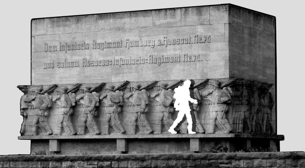В 2012 и 2013 годах соответственно Гамбургский парламент и позже сенат принимают решение об установке памятника дезертиру в городе. Согласно документации, памятник дезертирам посвящен не только дезертирам, но и гражданским противникам войны, и помощникам и помощницам, которые рисковали своей жизнью, чтобы помочь дезертирам и повинным в «подрыве боеспособности».8 В конкурсном задании на памятник вписана необходимость взаимодействия с двумя другими памятниками путем критической конфронтации, комментария, действенного контраста, диалогичного взаимоотношения.9