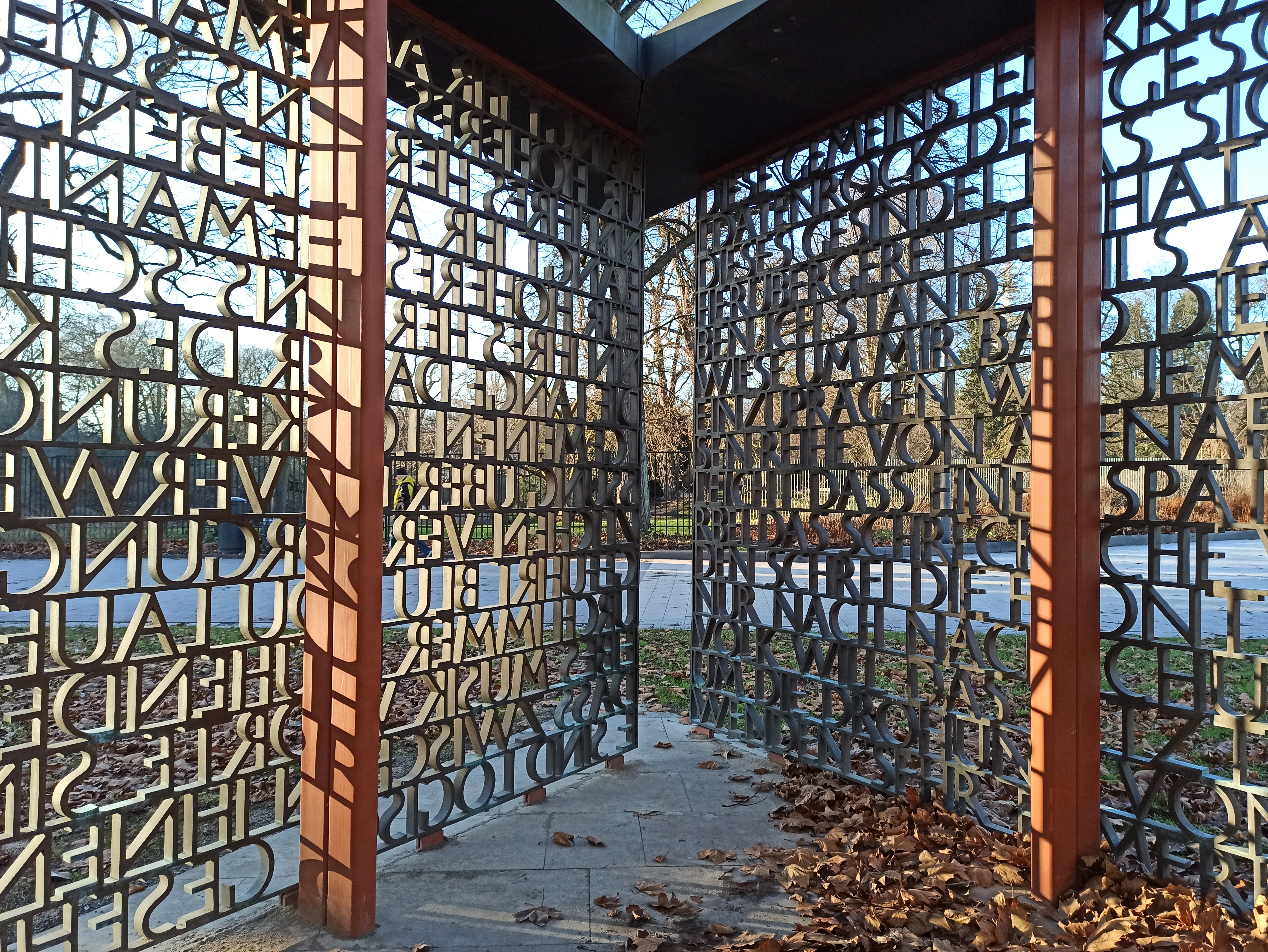 Проект Ланге обе эти стратегии не задействует и оставляет «кригсклотц», на первый взгляд, в том состоянии, в котором он был. Ланг проектирует архитектурное пространство в небольшом отдалении от 76-го, которое в плане имеет равносторонний треугольник. Со стороны автомобильной магистрали находится бетонная зигзагообразная несущая стена, две других стены представляют собой решетки, состоящие из фрагментов текста Гельмута Хайсенбюттеля «Германия 1944». В бетонную стену вмонтирована звуковая инсталляция. Зритель может выбрать на кнопочной панели чтение фрагментов текста Хайсенбюттеля или чтение фамилий дезертиров и короткой информации о них.