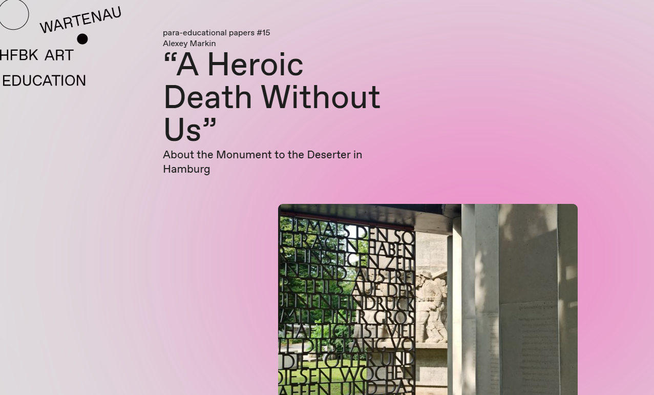 Mein Text „Ein Heldentod ohne uns“. Über das Deserteursdenkmal in Hamburg wurde ins Deutsche und Englische übersetzt und in der Reihe para-education papers veröffentlicht.