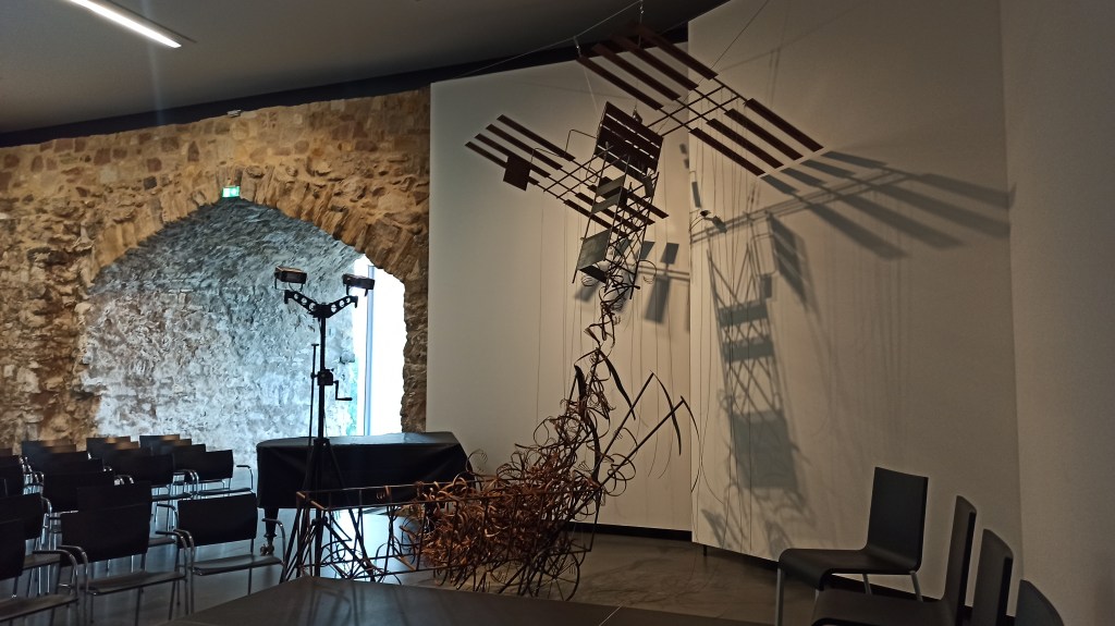 На фестивале представлены около 30 художников и художниц. Хотя среди них есть много медиа художников, на этом фестиваль не ограничивается и показывает объекты, живопись и инсталляции. В параллельной программе есть перформансы, показы фильмов, конференция, различные артист-токи итд. Основная экспозиция выставки занимает весь городской музей-крепость Морицбург и располагается на двух его этажах и во внутреннем дворе. Большинство участников и участниц выставки были для меня неизвестны, исключение составляет работа Что Делать, в которой я сам принимал участие, поэтому начну сразу с нее.